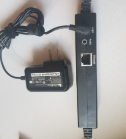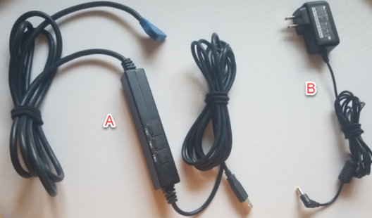 - Plug the power adapter (cable B) into the +12v port on cable A.