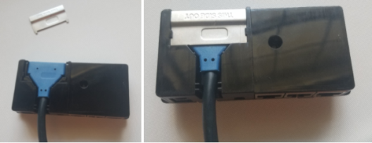 - Attach the blue connector from cable A (shown below) to the exposed groove.